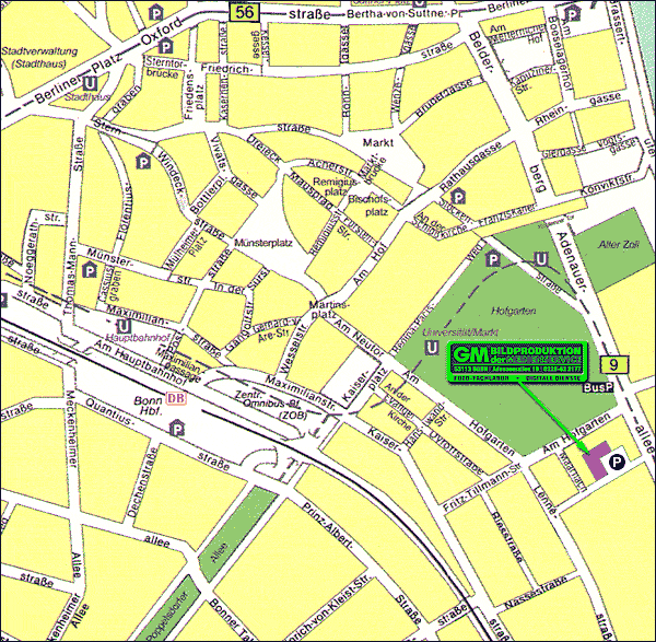 Über Bundeskanzlerplatz > Adenauerallee (B9) > eigener Stellplatz: Adenauerallee 10 oder